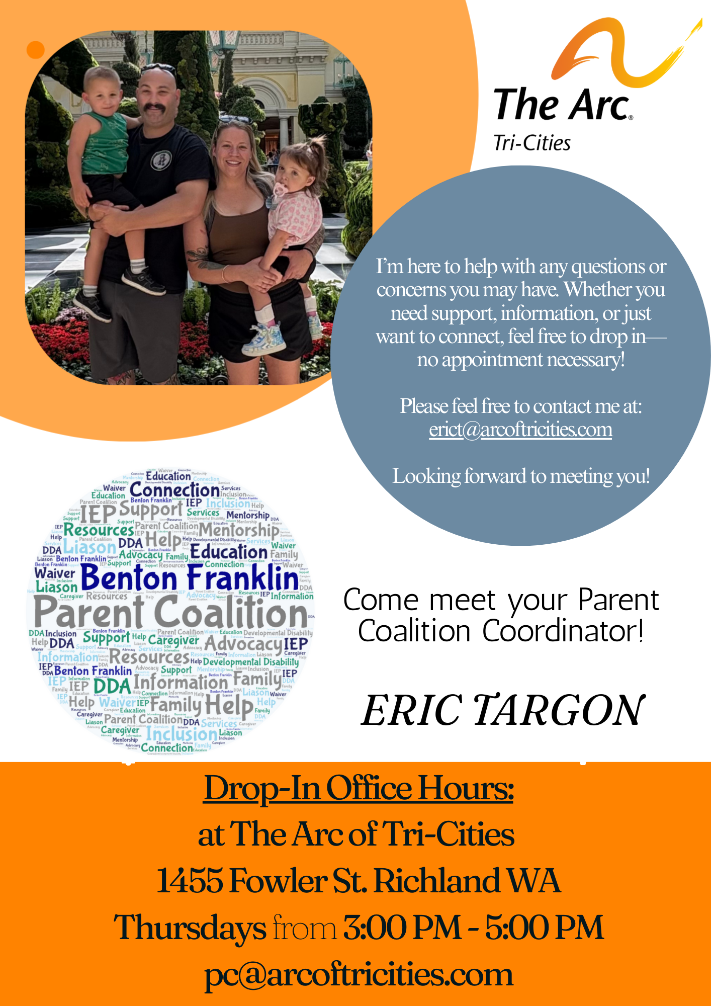 In-person meetings the first Wednesday of each month at 12:30 pm, at The Arc of Tri-Cities, or by Zoom at 6pm.